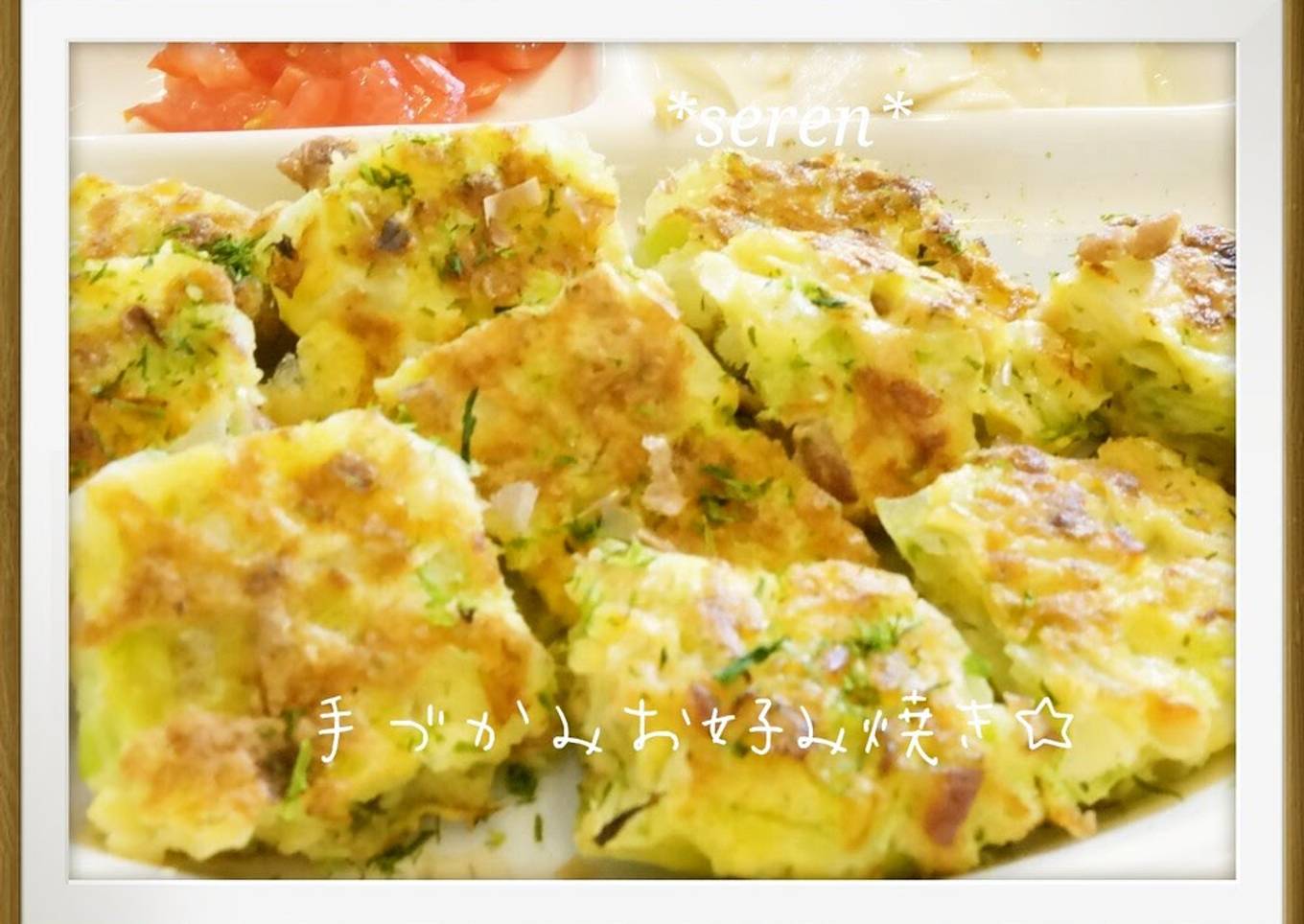 I came up with this simple okonomiyaki that's full of nutrients. After turning off the heat, keep the lid on so that the residual heat will cook the cabbage to a nice and tender finish. This is also good for fully weaned toddlers who are practicing using a fork. For about two 10 cm [3.9 in] cakes. Recipe by *seren*