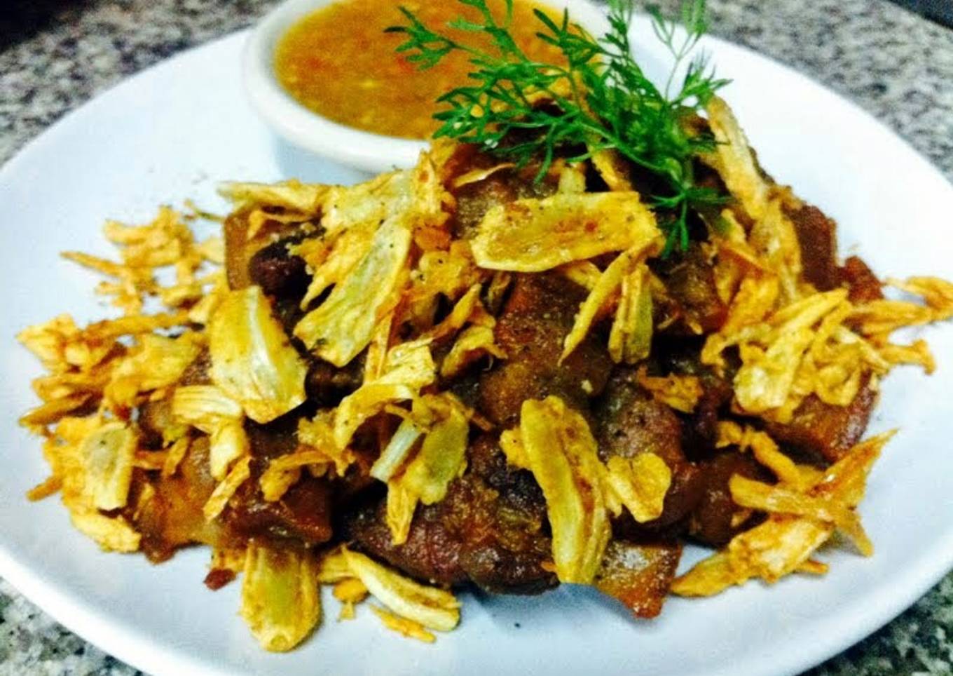 - With little bacon oil,fry crushed garlic on low heat until lightly brown,add bacon,pepper,mix well,then serve hot over steamed jasmine rice,or only dipping with my spicy sauce :)
