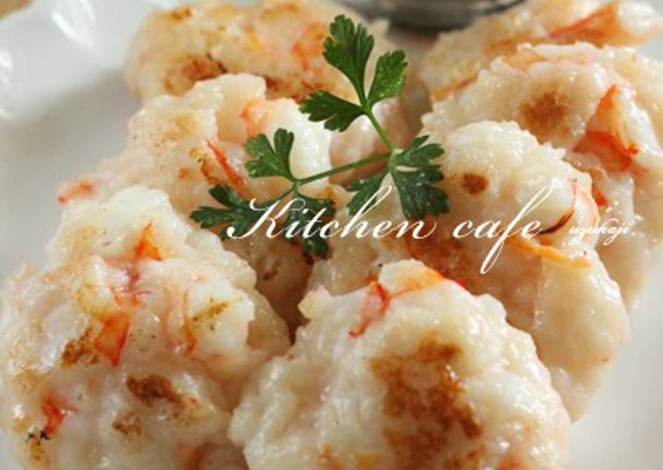 After thinking about making something with hanpen fishcake and my favorite food shrimp for a long time, I came up with this recipe. Add vinegar soy sauce and bon appetit! When you cook them, it's like cooking gyoza dumplings. When I put it in a bento, I add mayonnaise. For 2 servings. Recipe by uzukaji